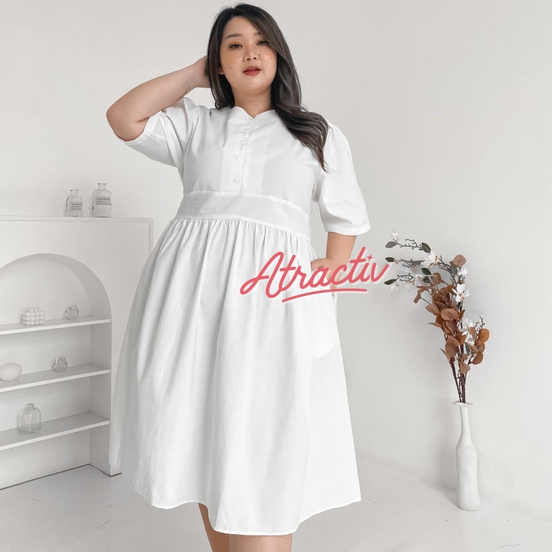 Dress Big Size dengan desain klasik dan bahan katun oxford. Sangat elegan, simpel, dan cocok untuk dipakai pada kegiatan kerja ataupun kasual